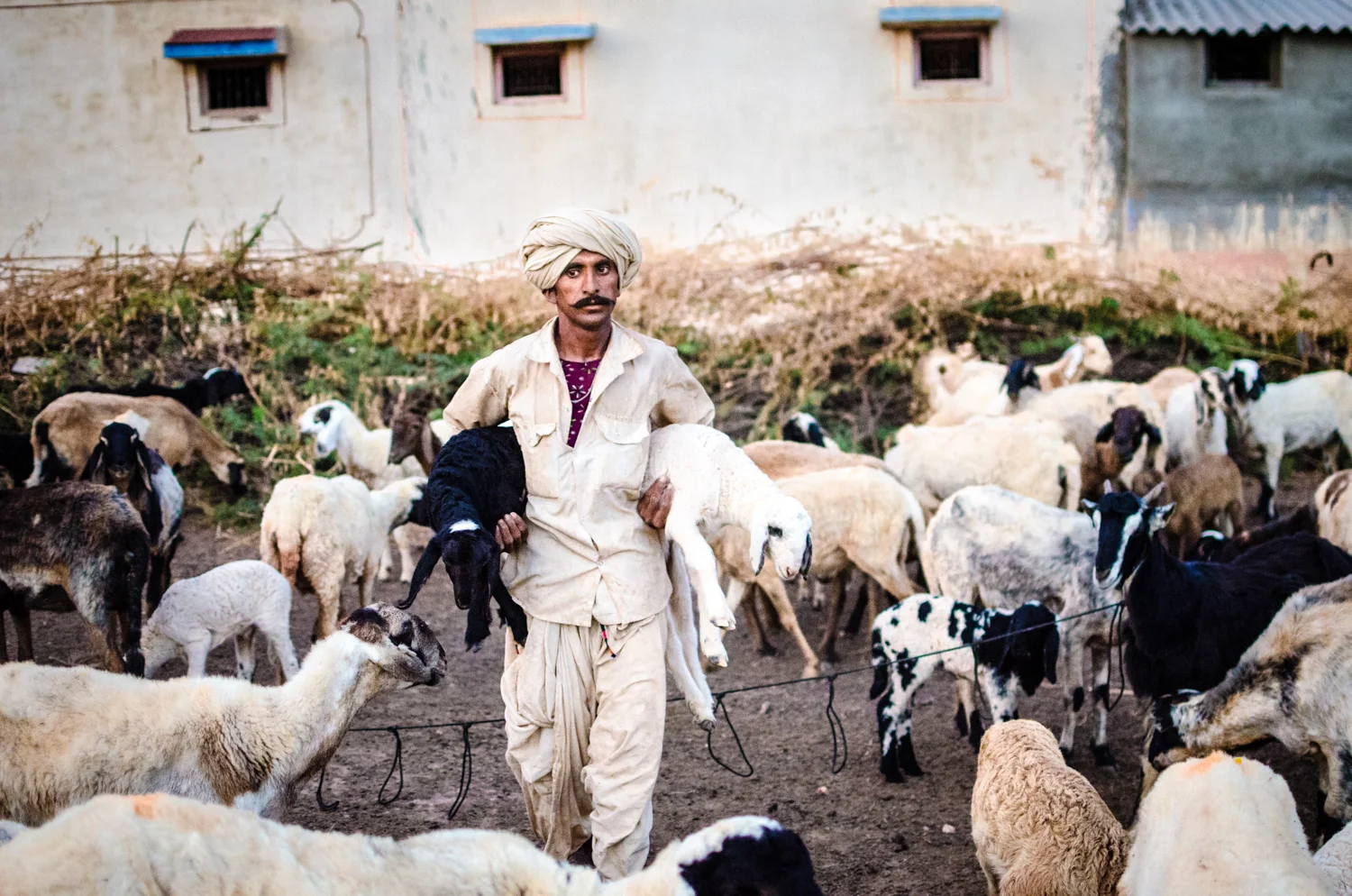 The Maldhari are the traditional herding clans of Western India. Mainly hailing from Gujarat, they belong to a number of tribes, most Hindu, some Muslim, each with unique distinctions yet bound by a strong sense of common identity. Raising cows, sheep, goats, camels, and buffaloes, they often migrate far and wide in search of fodder for their animals. Renowned for the quality of their dairy products, they once supplied the rajas of the region with milk, butter, yogurt and mava (an important ingredient in Indian sweets).
